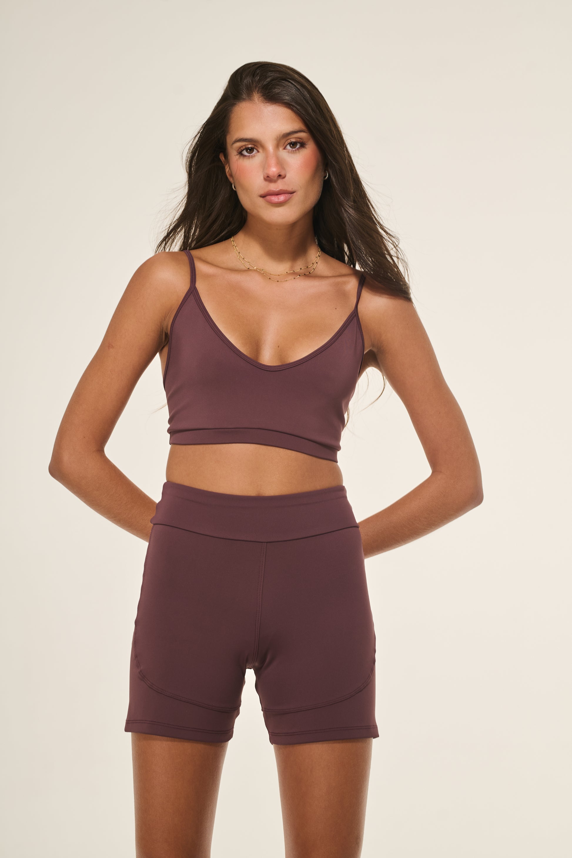 Top Alças Finas Marrom Ébano com design minimalista e funcional. Produzido em tecido tecnológico de poliamida e elastano, oferece toque macio, conforto térmico, compressão ideal e zero transparência. Desenvolvido para treinos com liberdade, suporte e leveza.